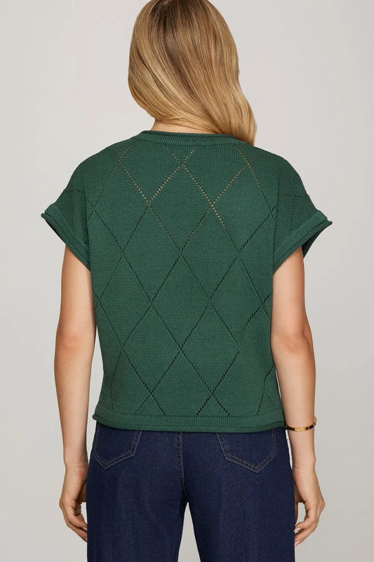 Drop Short Sleeve Checked Bow Sweather